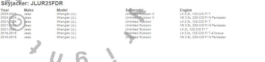 Skyjacker - Suspension Lift Kit P/N JLUR25FDR Features: