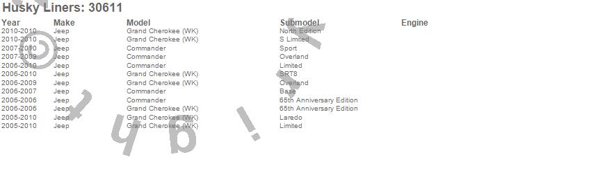Below is an abbreviated list of applications for the Classic Style Floor Liner.
