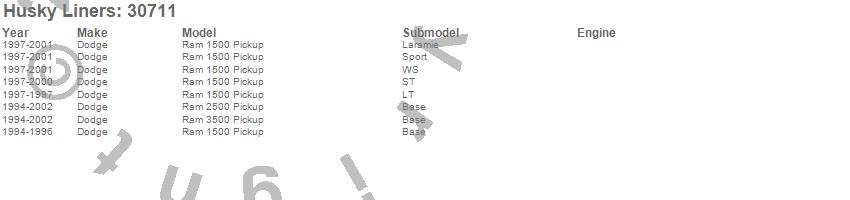 Below is an abbreviated list of applications for the Classic Style Floor Liner.