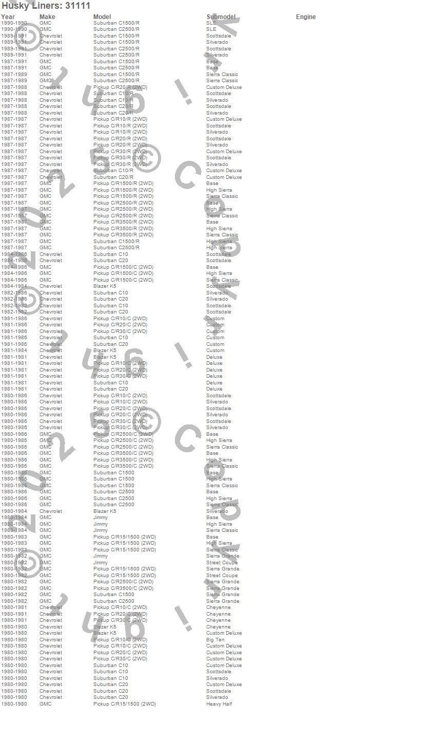 Below is an abbreviated list of applications for the Classic Style Floor Liner.