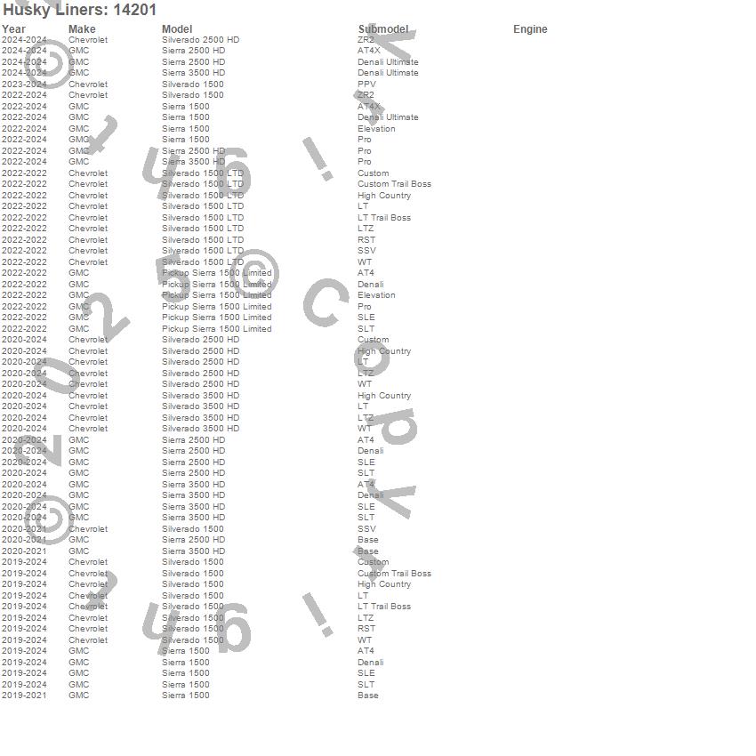 Below is an abbreviated list of applications for the WeatherBeater Floor Liner.