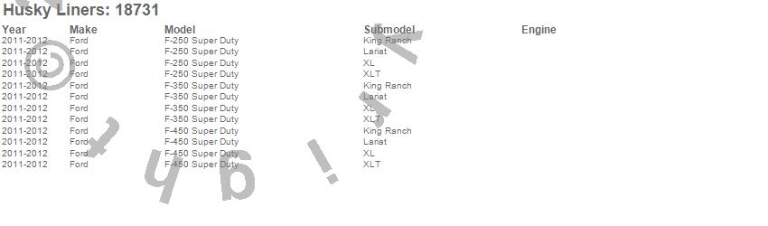 Below is an abbreviated list of applications for the WeatherBeater Floor Liner.