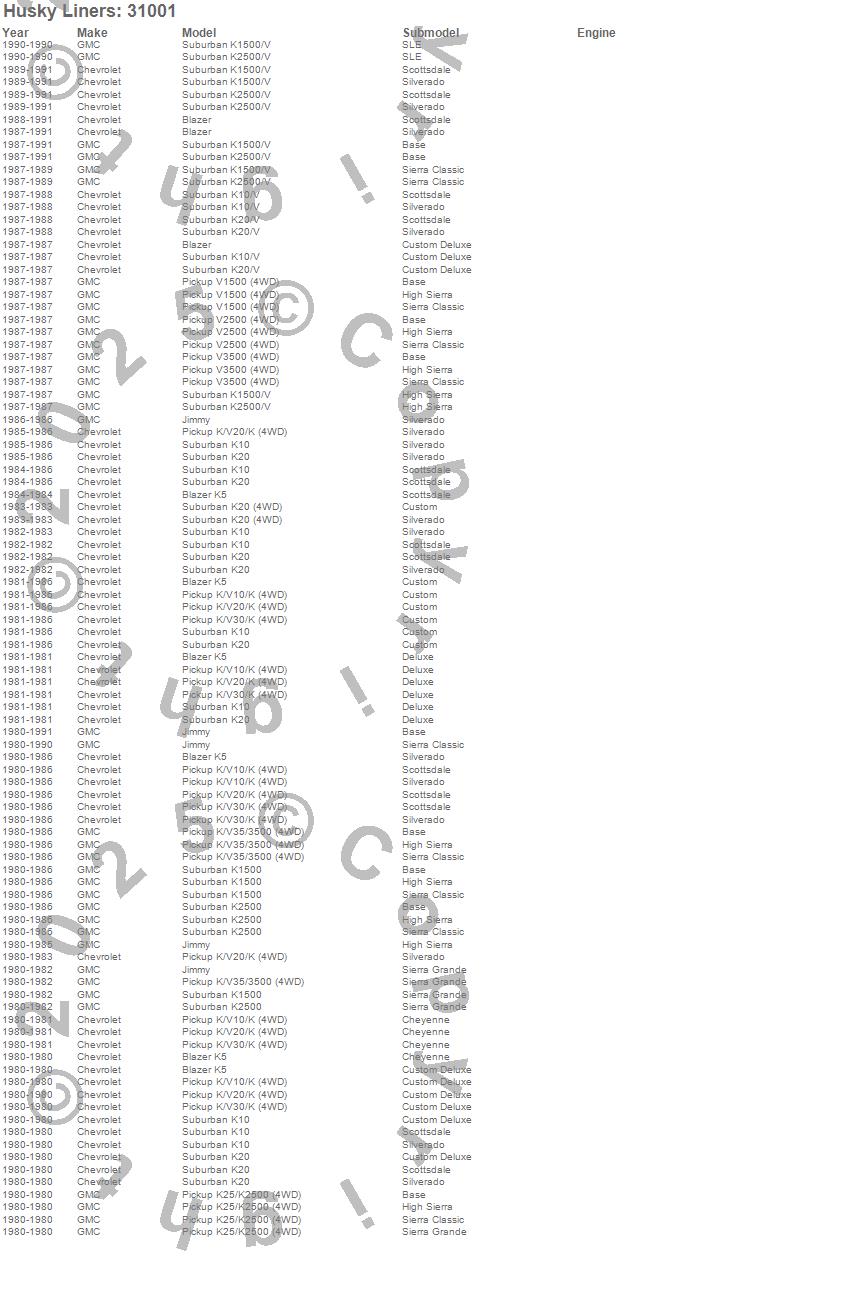 Below is an abbreviated list of applications for the Classic Style Floor Liner.