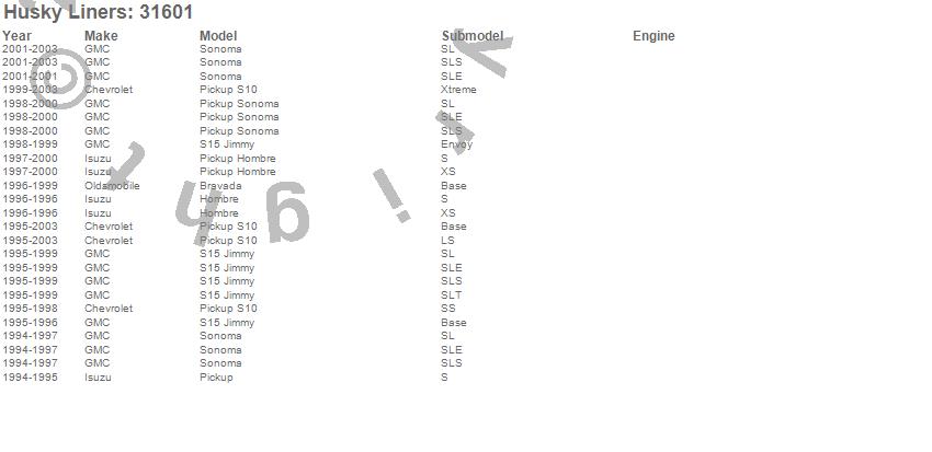 Below is an abbreviated list of applications for the Classic Style Floor Liner.