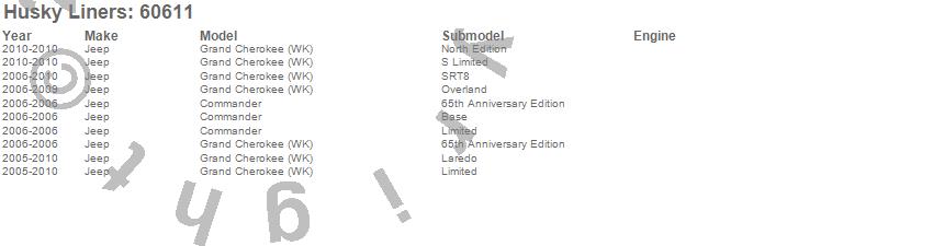 Below is an abbreviated list of applications for the Classic Style Floor Liner.