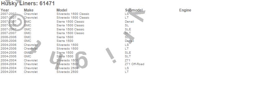 Below is an abbreviated list of applications for the Classic Style Floor Liner.