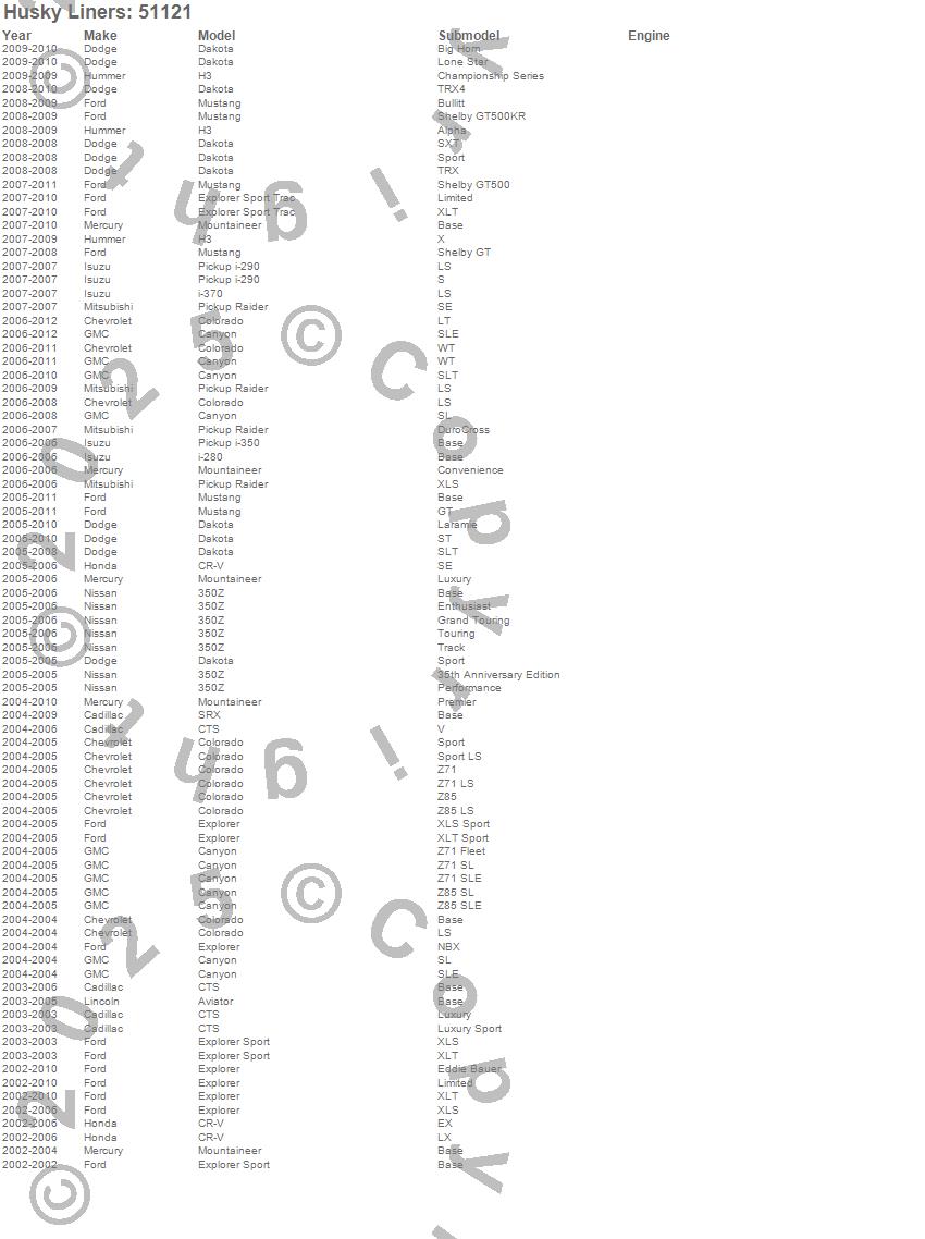 350Z, Aviator, Canyon, Colorado, CR-V, CTS, Dakota, Explorer, Explorer Sport, Explorer Sport Trac, H3, i-280, i-290, i-350, i-370, Mountaineer, Mustang, Raider, SRX, Cadillac