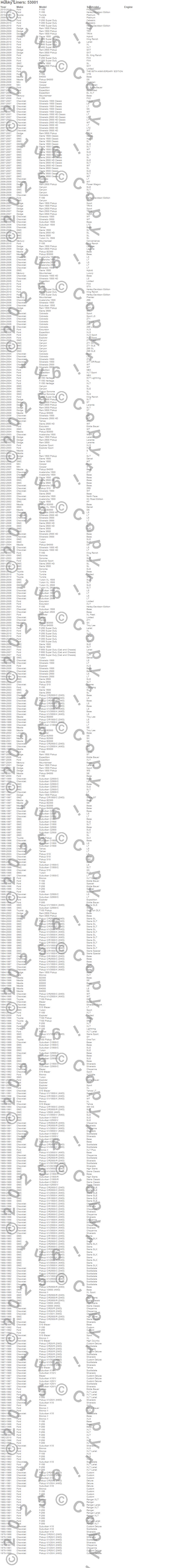 Below is an abbreviated list of applications for the Heavy Duty Floor Mat Center Hump.