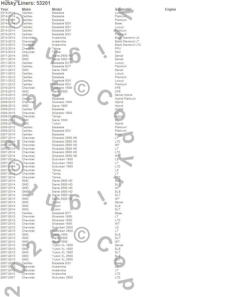 Avalanche, Escalade, Escalade ESV, Escalade EXT, Sierra 1500, Sierra 2500 HD, Sierra 3500 HD, Silverado 1500, Silverado 2500 HD, Silverado 3500 HD, Suburban 1500, Suburban 2500, Tahoe, Yukon, Yukon XL 1500, Yukon XL 2500, Cadillac, Chevrolet, GMC, 2014