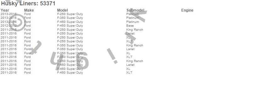 Below is an abbreviated list of applications for the X-act Contour Center Hump Floor Liner.