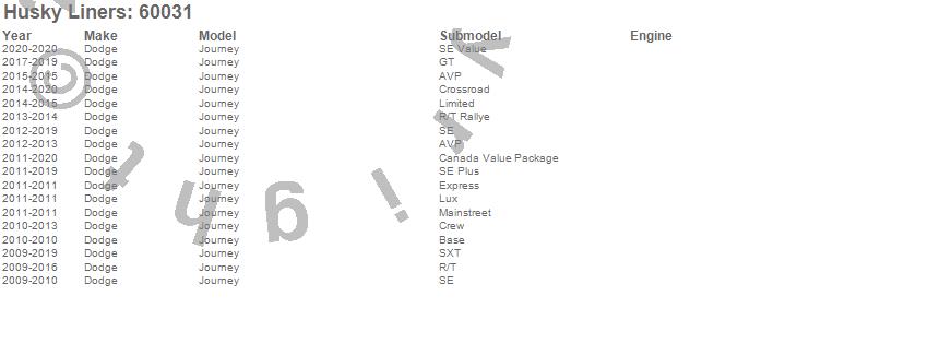 Below is an abbreviated list of applications for the Classic Style Floor Liner.