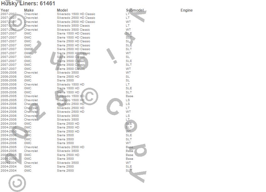 Below is an abbreviated list of applications for the Classic Style Floor Liner.