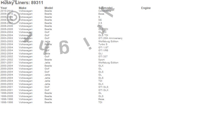 Below is an abbreviated list of applications for the Classic Style Floor Liner.