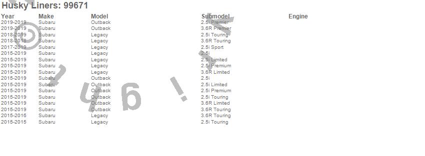 Below is an abbreviated list of applications for the WeatherBeater Floor Liner.