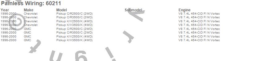 Below is an abbreviated list of applications for the Engine Wiring Harness.