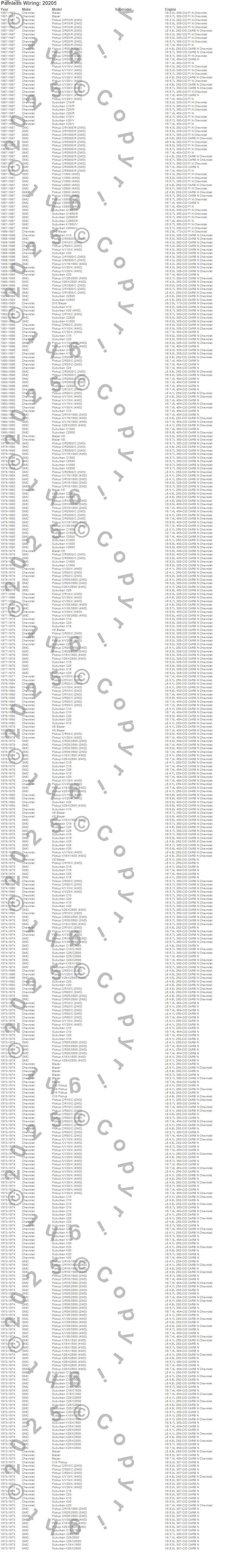 Blazer, Blazer K5, C10 Pickup, C10 Suburban, C15 Suburban, C15/C1500 Suburban, C1500 Pickup, C1500 Suburban, C20 Pickup, C20 Suburban, C25 Suburban, C25/C2500 Pickup, C25/C2500 Suburban, C2500 Pickup, C2500 Suburban, C30 Pickup, C35/C3500 Pickup, C3500 Pickup, K10 Pickup, K10 Suburban