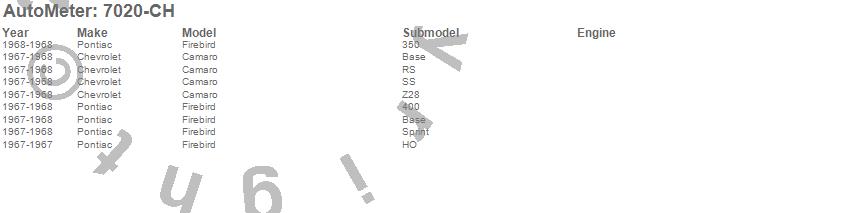 AutoMeter 7020-CH Chrono Direct-Fit Dash Kit 6 pc. - Tach/Speedo/Fuel/OilP/Wtmp/Volt - 8K RPM/160 MPH/100PSI/100-250 Deg F/8-18V/0-280 Ohms