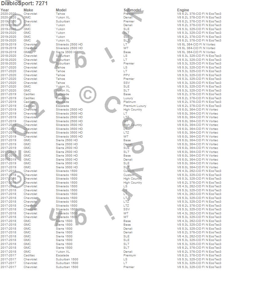 Below is an abbreviated list of applications for the Predator P2 Platinum Performance Tuner.