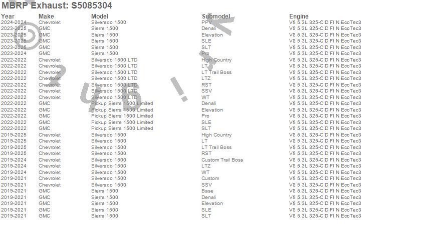 Below is an abbreviated list of applications for the Armor Pro Cat Back Exhaust System.