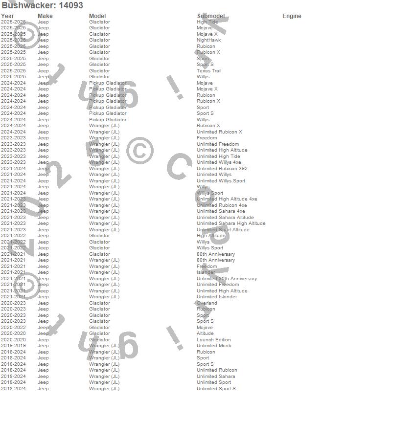The innovator and creator of the fender flare category, Bushwacker¿ is a U.S. manufacturer of aftermarket and OE automotive accessories. The company specializes in quality products for trucks and Jeeps, utilizing ISO/TS standards with on-site design and tooling resources. Products include fender flares, bedrail caps, tailgate caps, and trail armor. Bushwacker is backed by more than 50 years of innovation and industry-leading customer service.