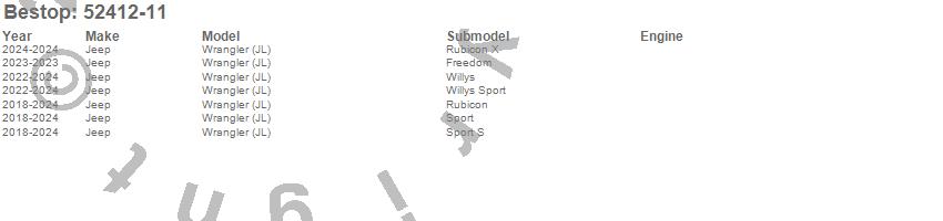 Below is an abbreviated list of applications for the Sun Extended Safari Style Bikini Top.