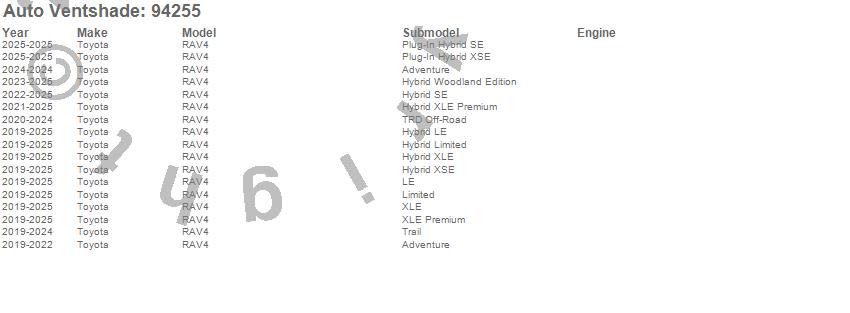 Below is an abbreviated list of applications for the Ventvisor Deflector 4 pc..