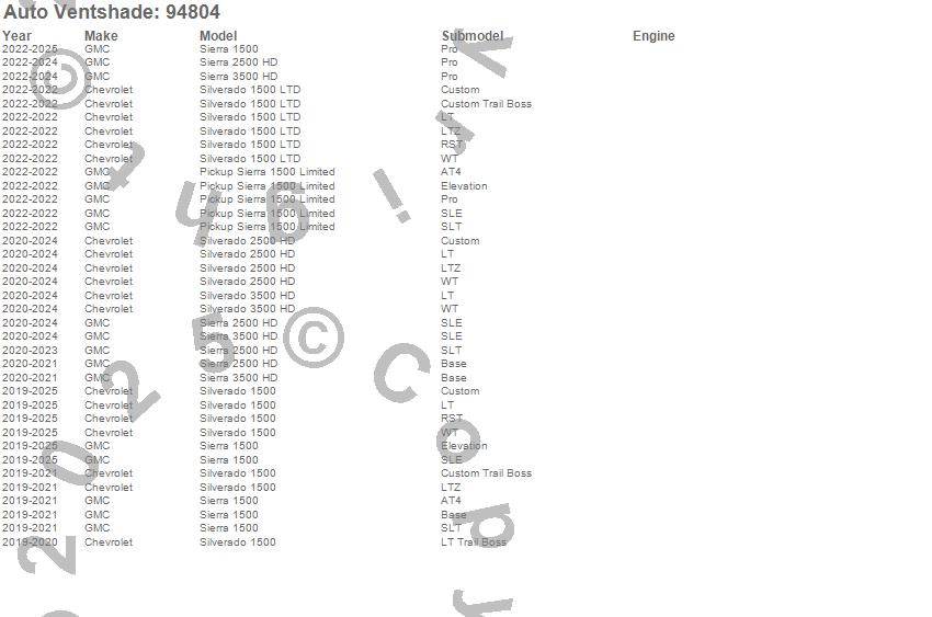 Below is an abbreviated list of applications for the Ventvisor Deflector 4 pc..