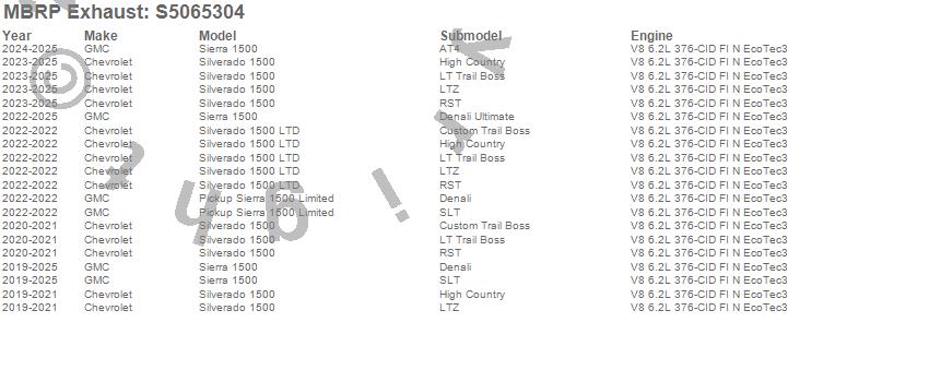 Below is an abbreviated list of applications for the Armor Pro Cat Back Exhaust System.