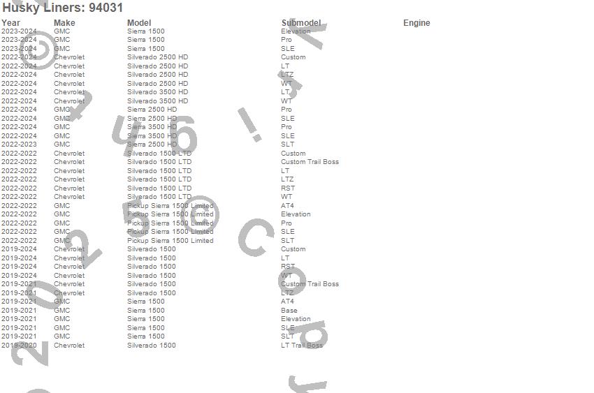 Below is an abbreviated list of applications for the WeatherBeater Floor Liner.