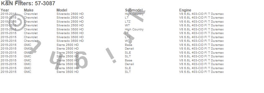 Below is an abbreviated list of applications for the Filtercharger Injection Performance Kit.