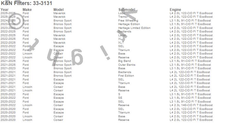 K&N Filters - Air Filter P/N 33-3131 Features: