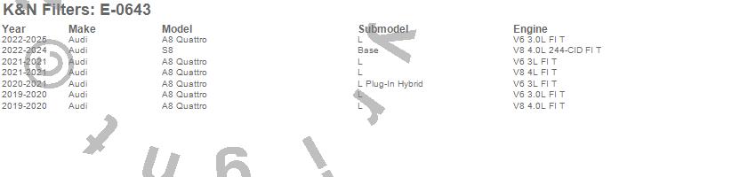 Below is an abbreviated list of applications for the Air Filter.