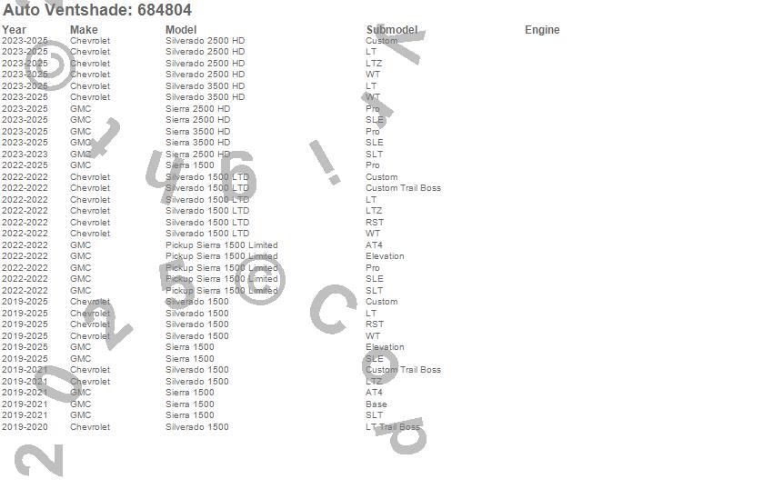 Below is an abbreviated list of applications for the Chrome Ventvisor Deflector 4 pc..