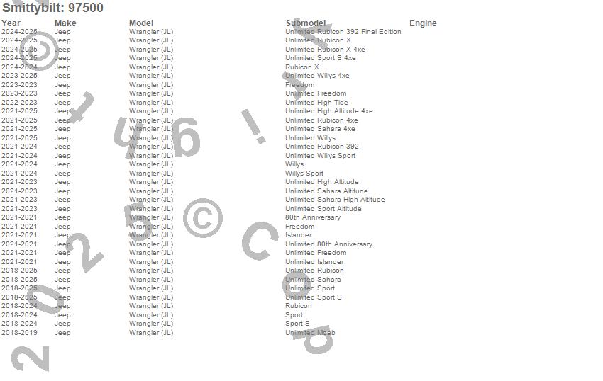 Wrangler (JL), Jeep, 2025, 2024, 2023, 2022, 2021, 2020, 2019, 2018