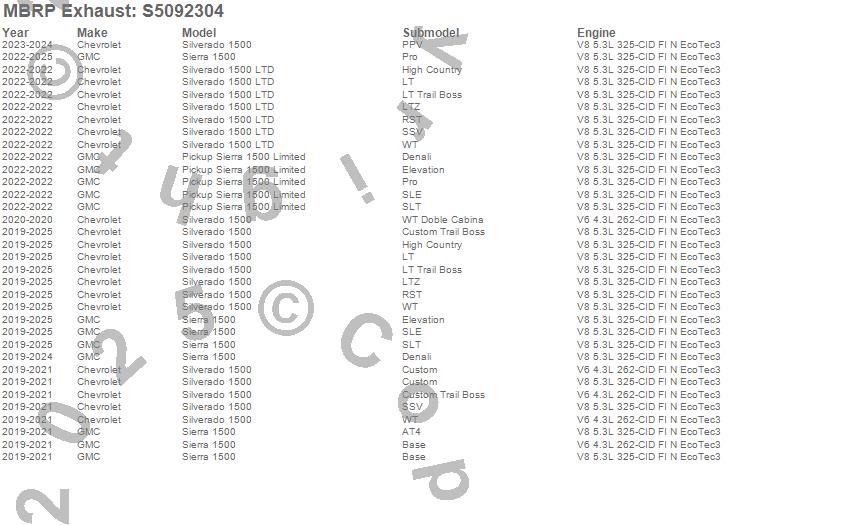 Below is an abbreviated list of applications for the Armor Pro Cat Back Exhaust System.