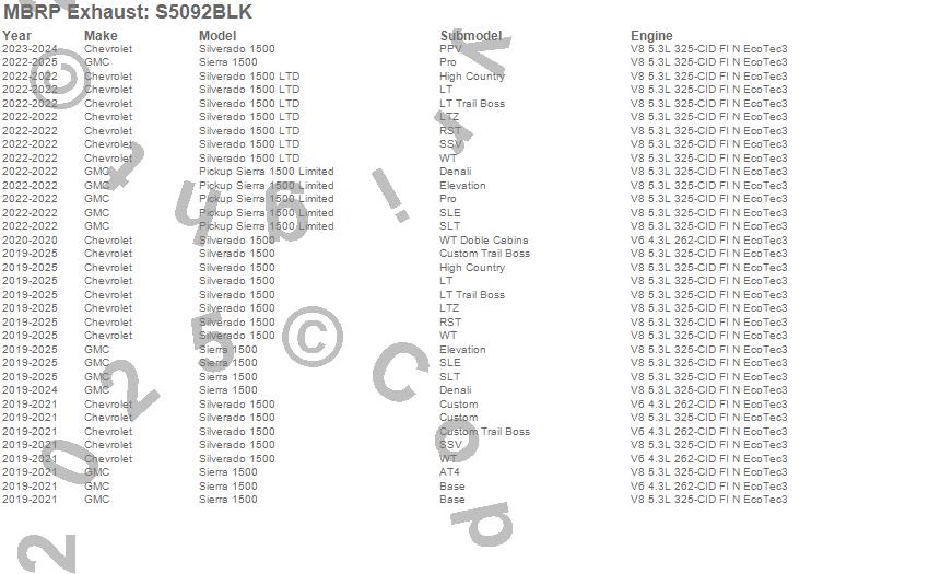 Below is an abbreviated list of applications for the Armor BLK Cat Back Exhaust System.