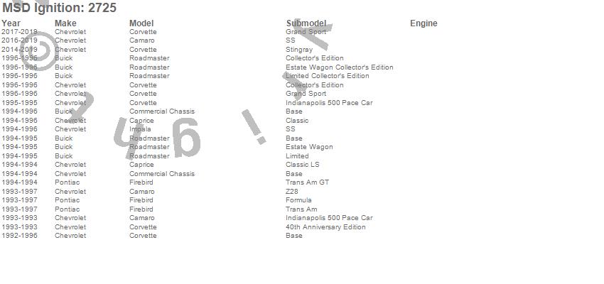 Camaro, Caprice, Commercial Chassis, Corvette, Firebird, Impala, Roadmaster, Buick, Chevrolet, Pontiac, 2019, 2018, 2017, 2016, 2015, 2014, 1997, 1996, 1995, 1994