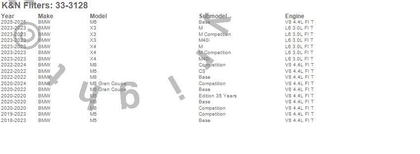 K&N Filters - Air Filter P/N 33-3128 Features: