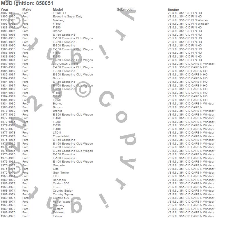 Bronco, Country Sedan, Country Squire, Custom, Custom 500, E-100 Econoline, E-100 Econoline Club Wagon, E-150 Econoline, E-150 Econoline Club Wagon, E-250 Econoline, E-250 Econoline Club Wagon, E-350 Econoline, E-350 Econoline Club Wagon, Econoline Super Duty, Elite, F-100, F-150, F-250, F-250 HD, F-350