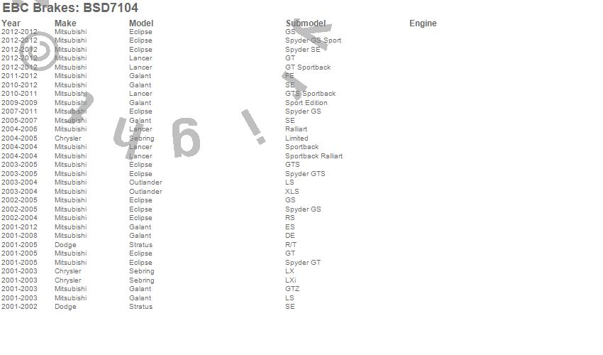 Below is an abbreviated list of applications for the BSD Series Sport Rotor Set w/Ultra Quiet V Slot Configuration.