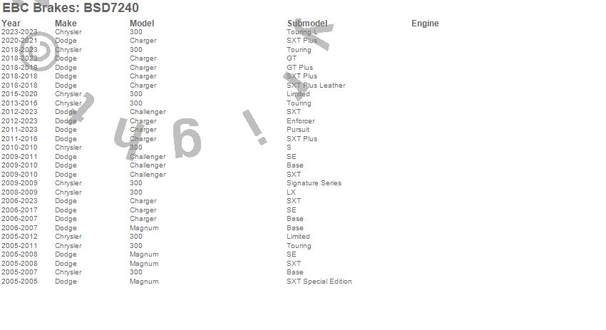 Below is an abbreviated list of applications for the BSD Series Sport Rotor Set w/Ultra Quiet V Slot Configuration.