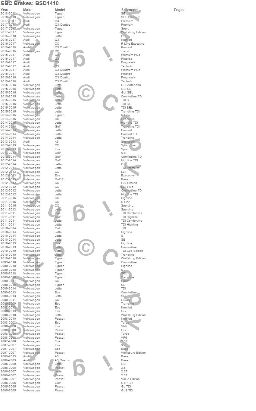 Below is an abbreviated list of applications for the BSD Series Sport Rotor Set w/Ultra Quiet V Slot Configuration.