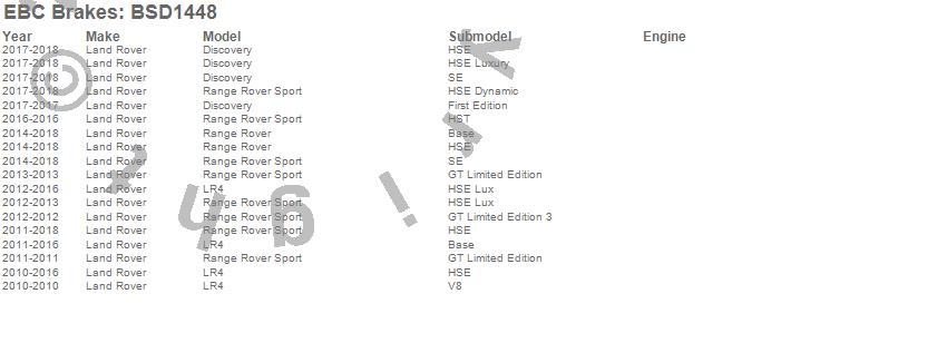 Below is an abbreviated list of applications for the BSD Series Sport Rotor Set w/Ultra Quiet V Slot Configuration.
