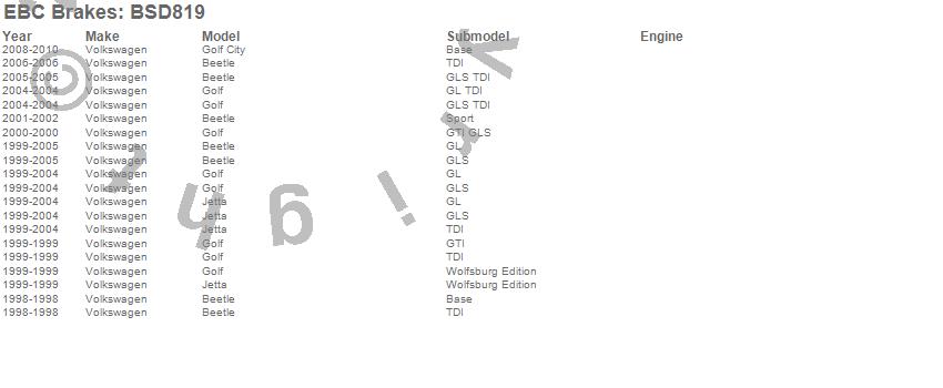 Below is an abbreviated list of applications for the BSD Series Sport Rotor Set w/Ultra Quiet V Slot Configuration.