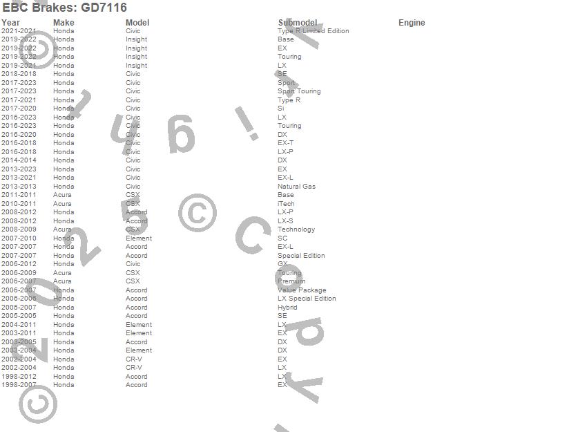 Below is an abbreviated list of applications for the 3GD Series Sport Slotted Rotor Set.