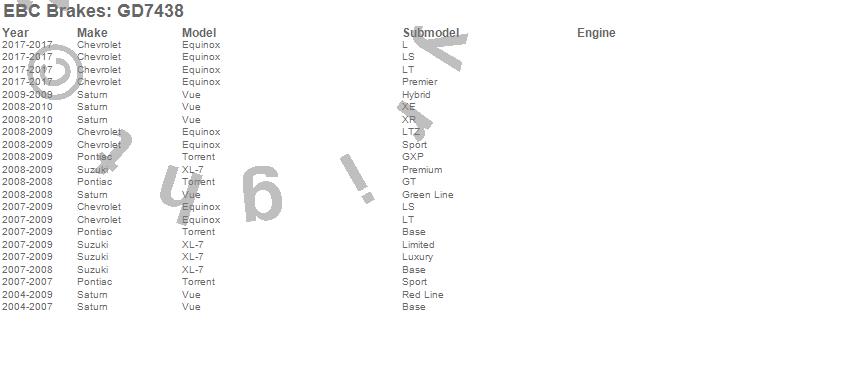 Equinox, Torrent, Vue, XL-7, Chevrolet, Pontiac, Saturn, Suzuki, 2017, 2010, 2009, 2008, 2007, 2006, 2005, 2004
