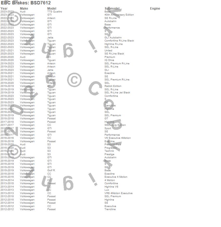 Below is an abbreviated list of applications for the BSD Series Sport Rotor Set w/Ultra Quiet V Slot Configuration.