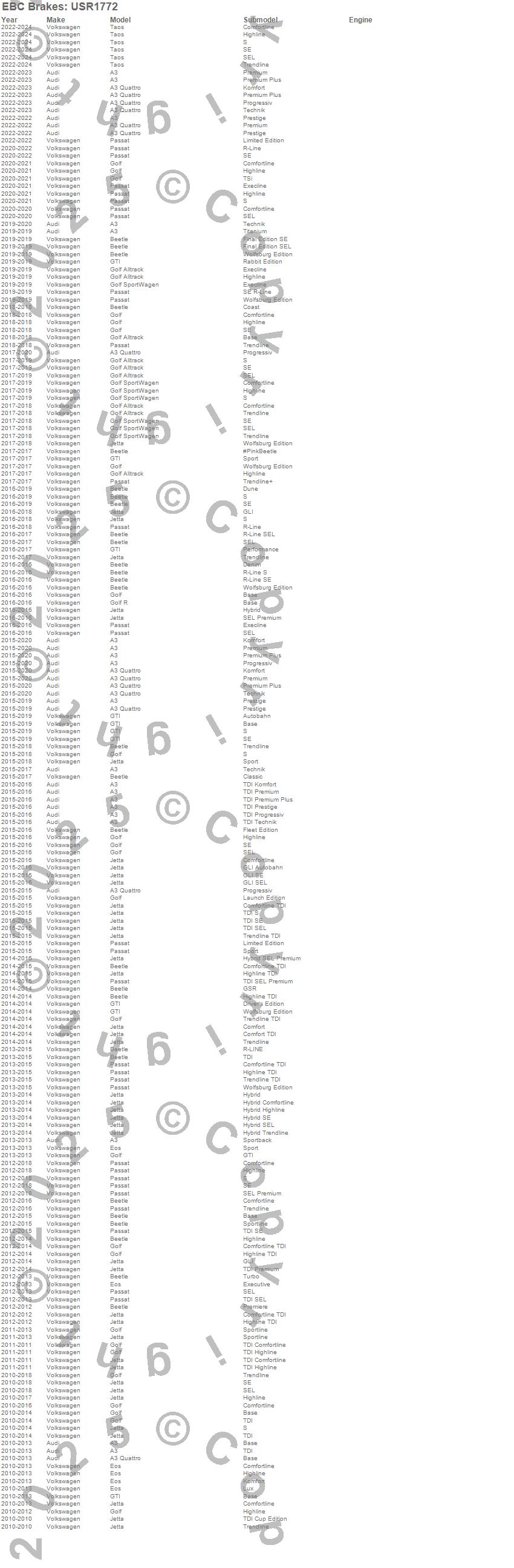 Below is an abbreviated list of applications for the USR Series Sport Slotted Rotor Set.