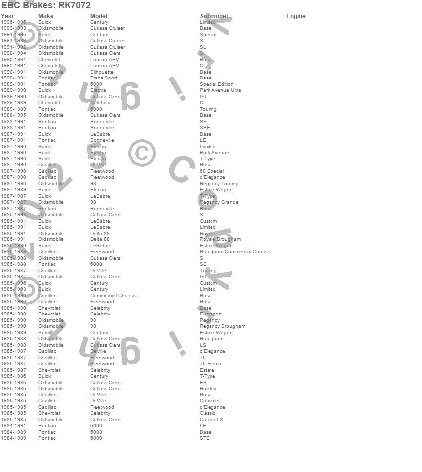 6000, 98, Bonneville, Celebrity, Century, Commercial Chassis, Cutlass Ciera, Cutlass Cruiser, Delta 88, DeVille, Electra, Fleetwood, LeSabre, Lumina APV, Silhouette, Trans Sport, Buick, Cadillac, Chevrolet, Oldsmobile