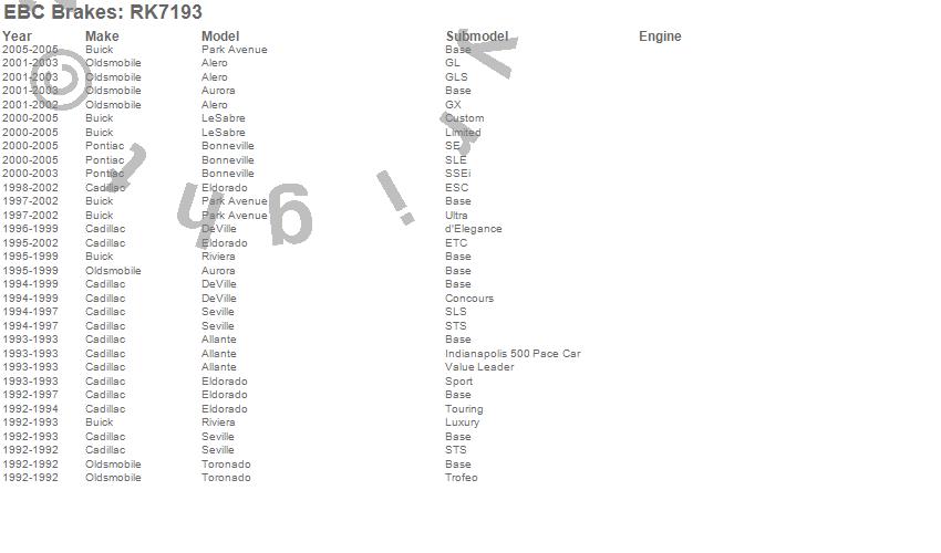 Alero, Allante, Aurora, Bonneville, DeVille, Eldorado, LeSabre, Park Avenue, Riviera, Seville, Toronado, Buick, Cadillac, Oldsmobile, Pontiac, 2005, 2004, 2003, 2002, 2001